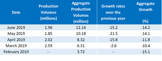 Figure 2: 2019 H1 Aggregate vehicleproduction volumes and growth figures