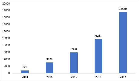 DJI is the leading company for drone inShenzhen and the world. DJI alone represents 70% of the global consumer dronemarket. DJI sales revenues amounted to CNY 820 million in 2013, a figure that has grown to a total of CNY 17.6 billion by the end of 2017.