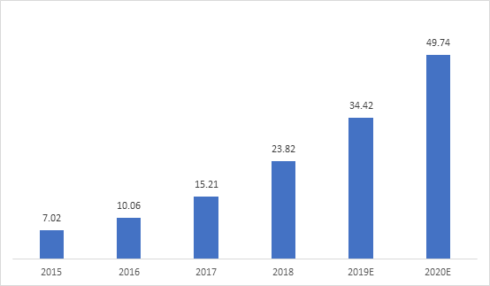 Chinese AI market size and projections for 2015-2020